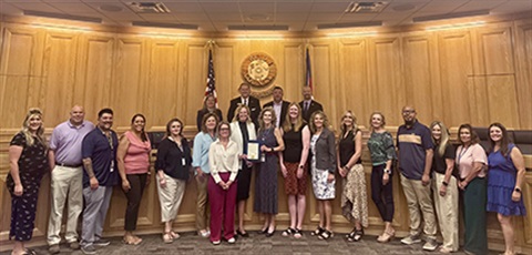 Members of the Weld County Department of Human Services standing with the Weld County Board of Commissioners holding a signed proclamation. In recognition of Weld County’s kin-first culture, meaning the efforts of the Child Welfare team to prioritize placements of children and youth with relatives or close family friends, the Weld County Board of Commissioners proclaimed September as Kinship Appreciation Month.