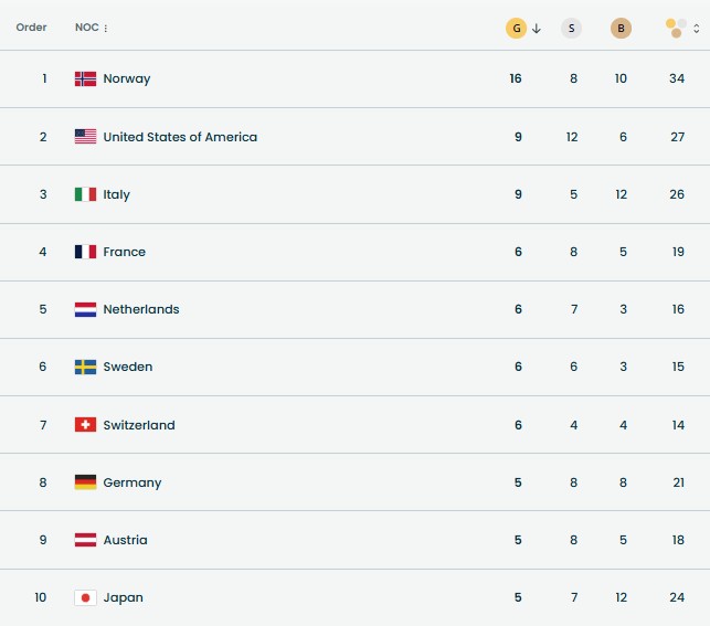 With today’s medal wins, Team USA now is in second place with 27 total medals as shown below! Once again, Congratulations Team USA!