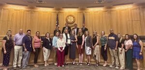 Members of the Weld County Department of Human Services standing with the Weld County Board of Commissioners holding a signed proclamation. In recognition of Weld County’s kin-first culture, meaning the efforts of the Child Welfare team to prioritize placements of children and youth with relatives or close family friends, the Weld County Board of Commissioners …